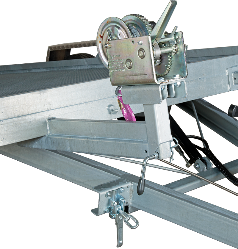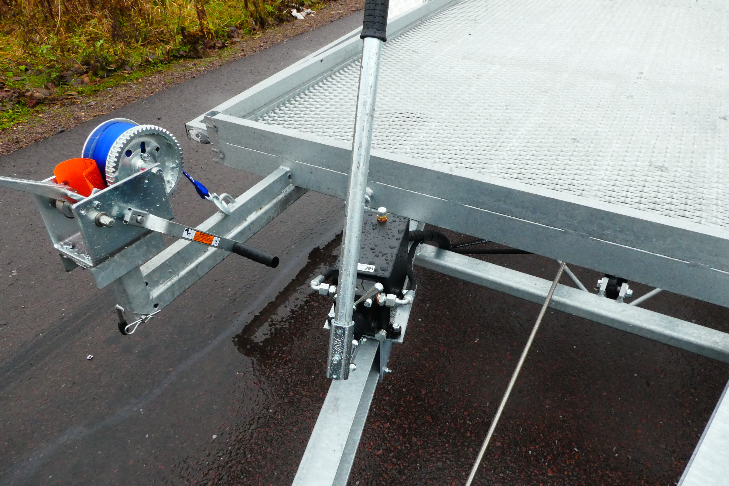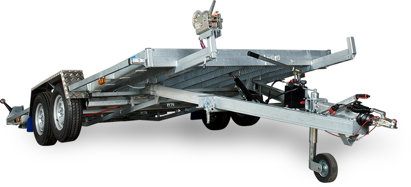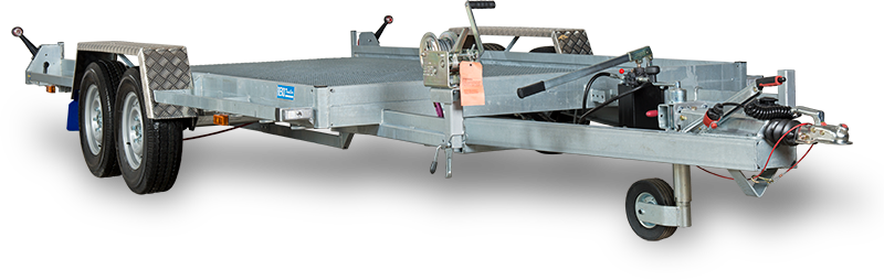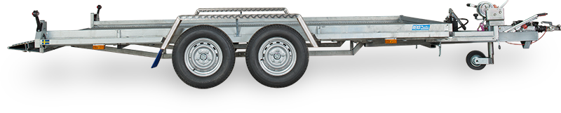 Biltrailer med lastyta 450 x 207. 2-axlad. Totalvikter: 2800, 2900, 3000kg. Lastförmåga: 1980, 2080, 2180kg. Denna biltransport levereras med kraftigt stödhjul, flyttbart fäste för vinsch samt vinschtorn, odämpad tipp. LED belysning som standard. Avtagbara skärmar i kraftig durkaluminium samt skärmavbärare. Självjusterande bromsar som standard.