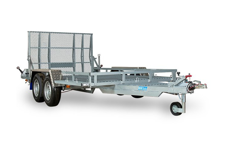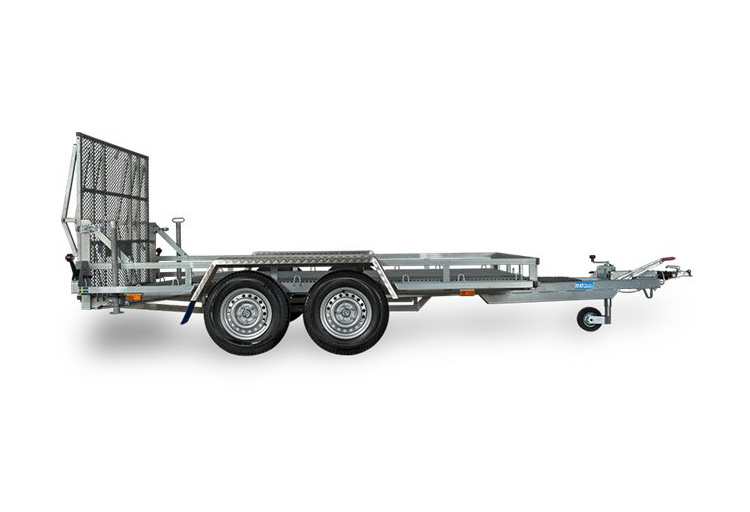 Maskintrailer. Lastyta 300 x 160. Totalvikt: 2100, 2200, 2300, 2400, 2500, 2600, 2700 kg. Finns med lastförmåga: ca 1584, 1684, 1784, 1884, 1984, 2084, 2184 kg. Levereras med kraftigt stödhjul, extra yta fram för skopa, kraftiga stödben bak i 4 kantsmodell med sprint, uppkörningsläm med stöd (höjd 130 cm) i sträckmetall, rampen har gasfjädring för lättare uppfällning. Durkaluminiumskärmar som tål att gå på, skärmavbärare. LED belysning som standard.