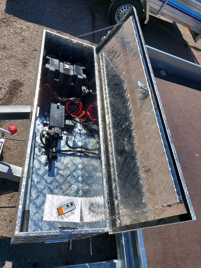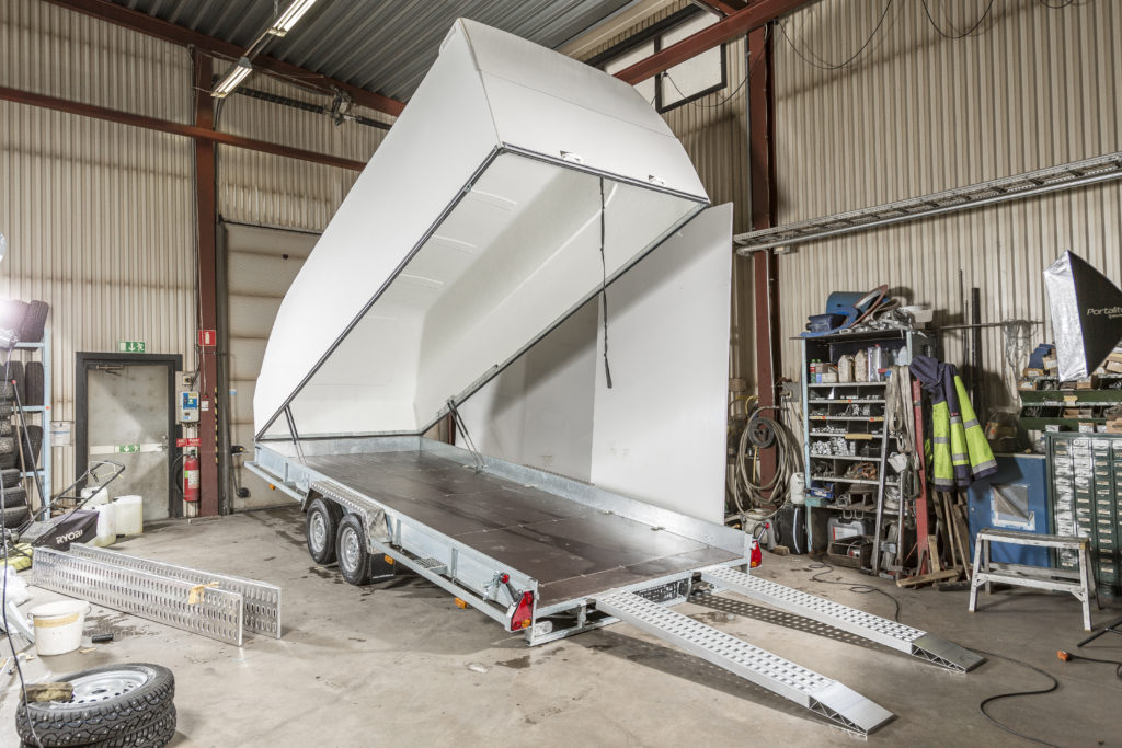 Släpvagnen på bilden kan vara extrautrustad, tex glasfiberkåpan.