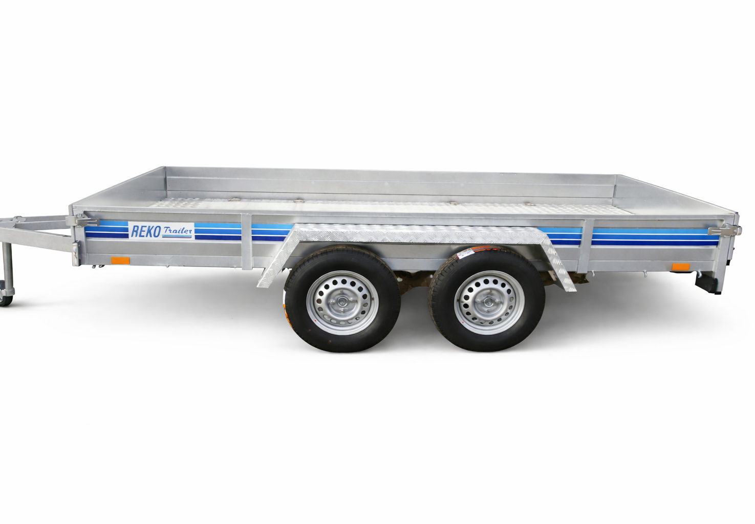 Släpvagn med flakmått 369x150cm. Tippbart flak. Totalvikter: 2800, 2900, 3000kg. Lastförmåga: 2290, 2390, 2490kg. FF29430TD har 2x1500kg hjulaxlar. Levereras med odämpad tipp, fast kabel 13 pol kontakt, rostfria lykthållare för positionsljus, utvändiga bindkrokar, invändiga surrningsöglor i lämsidan och stödhjul som standard. Baklämen håller för att köra upp tex. 4-hjuling eller klippare på vid lastning. Våra släpvagnar har lite längre dragbalkar vilket gör att de är mer följsamma och lättare att backa med.