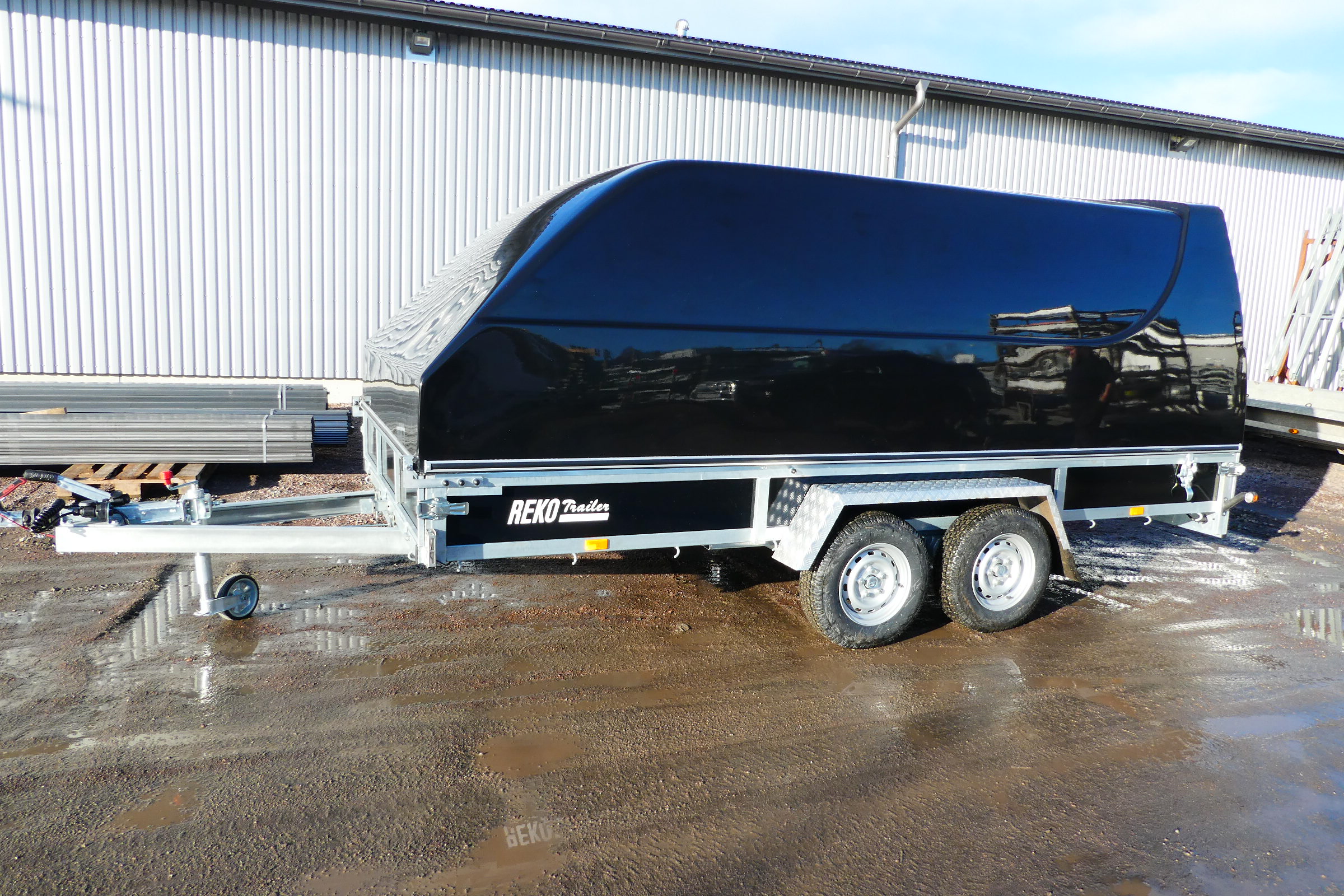 Släpvagnen på bilden kan vara extrautrustad, tex. med glasfiberkåpa.