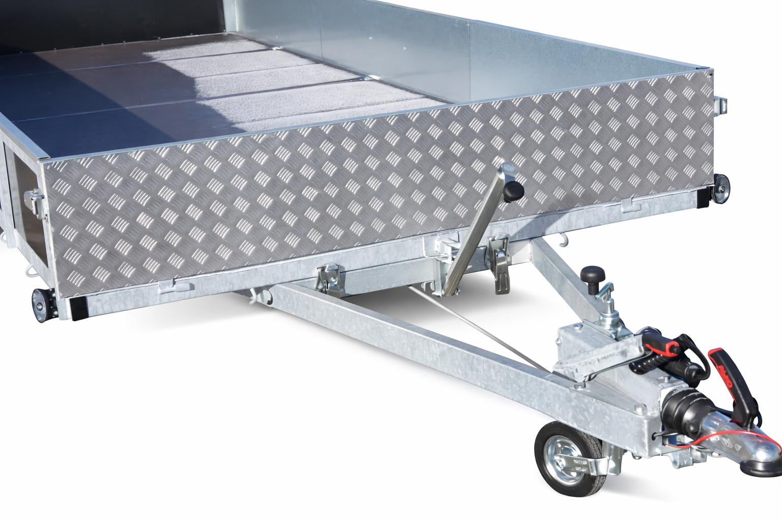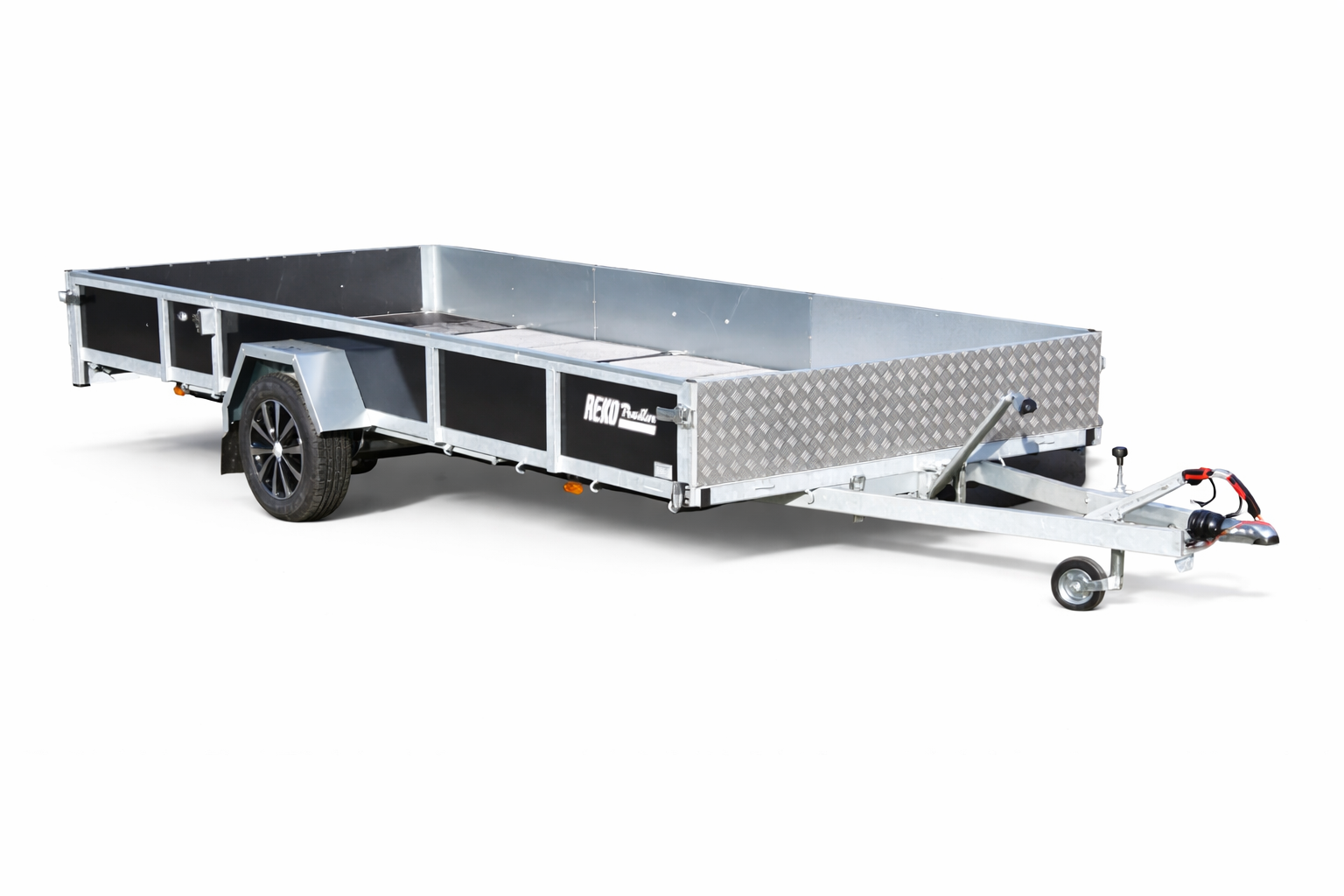 Skotervagn 460×195cm, 35cm lämsida. 1350kg axel. Lastförmåga: 500, 600, 700, 750, 800 kg. Totalvikter: 1000-1300 kg.