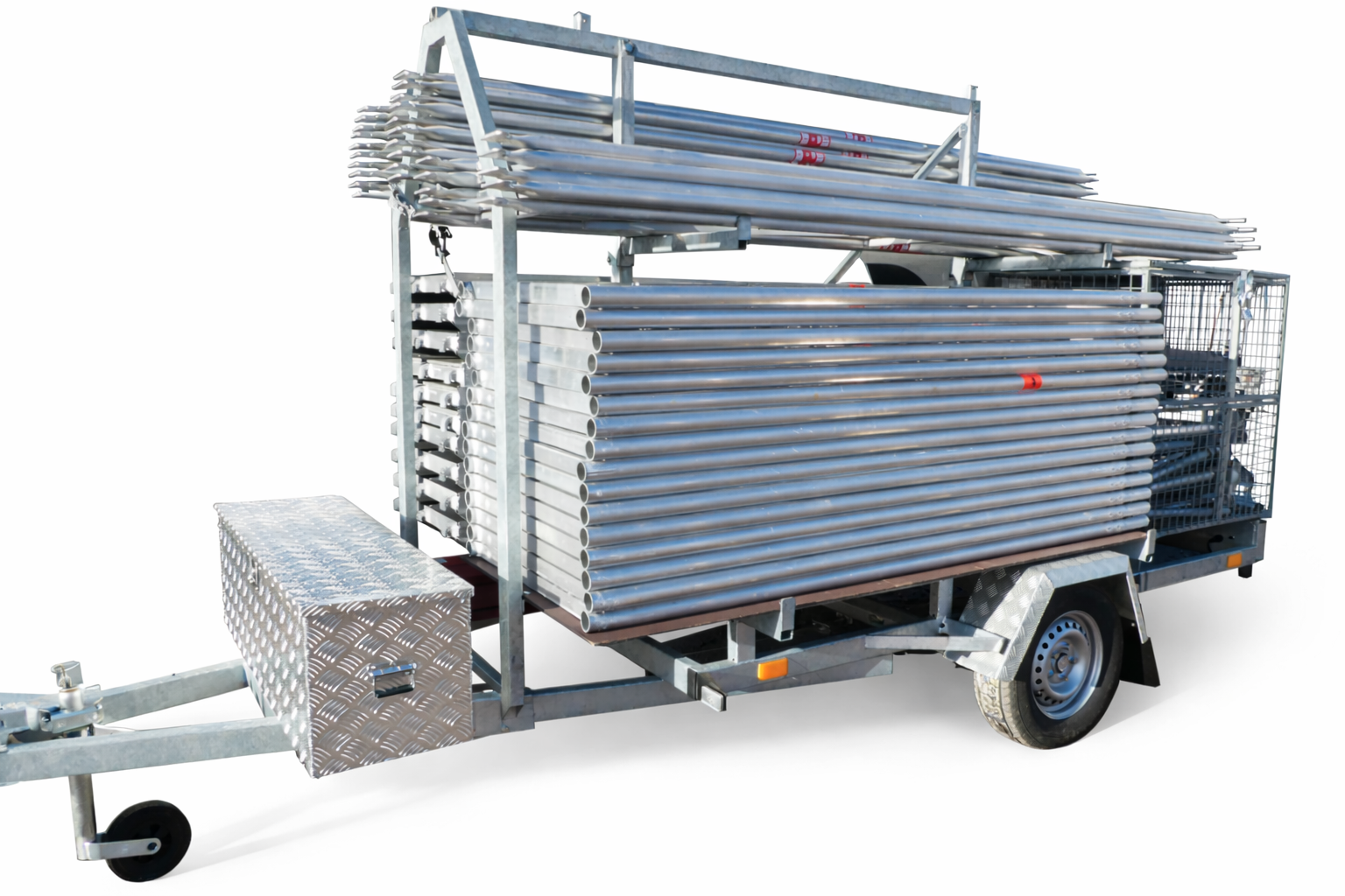 Ställningsvagn. Totalvikt 750-1300kg. Alulåda och Stålkorg ingår.